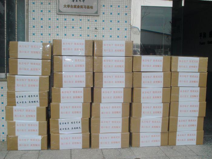 21日下午4点,免费运输赈灾物资的车辆到达,公司领导和工人们一起动手装车。满载着东莞市东坑兴强亚精密五金加工厂全体员工期盼和祝福的照明设备运往雅安灾区……