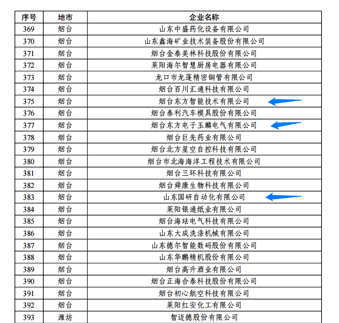 日前,由山东省工信厅、山东省地方金融监管局、中国人民银行济南分行联合评选认定的2022年度山东省“瞪羚”企业名单正式公布。我集团公司的烟台东莞市东坑兴强亚精密五金加工厂玉麟电气有限公司、山东国研自动化有限公司、烟台东方智能技术有限公司等三家权属企业入选,认定日期为即日起至2025年12月31日。