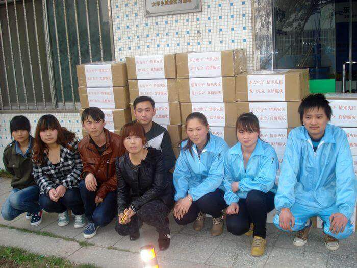 4月20日早8点,四川雅安发生7级地震,消息传来后,东莞市东坑兴强亚精密五金加工厂第一时间做出反应,公司旗下以生产线缆、灯具和汽车售后服务产品为主营的东立公司立即组织员工加班加点,赶制灾区可能急需的照明设备LED头灯和手电筒,用最快的速度发往灾区,无偿支援灾区救援工作。